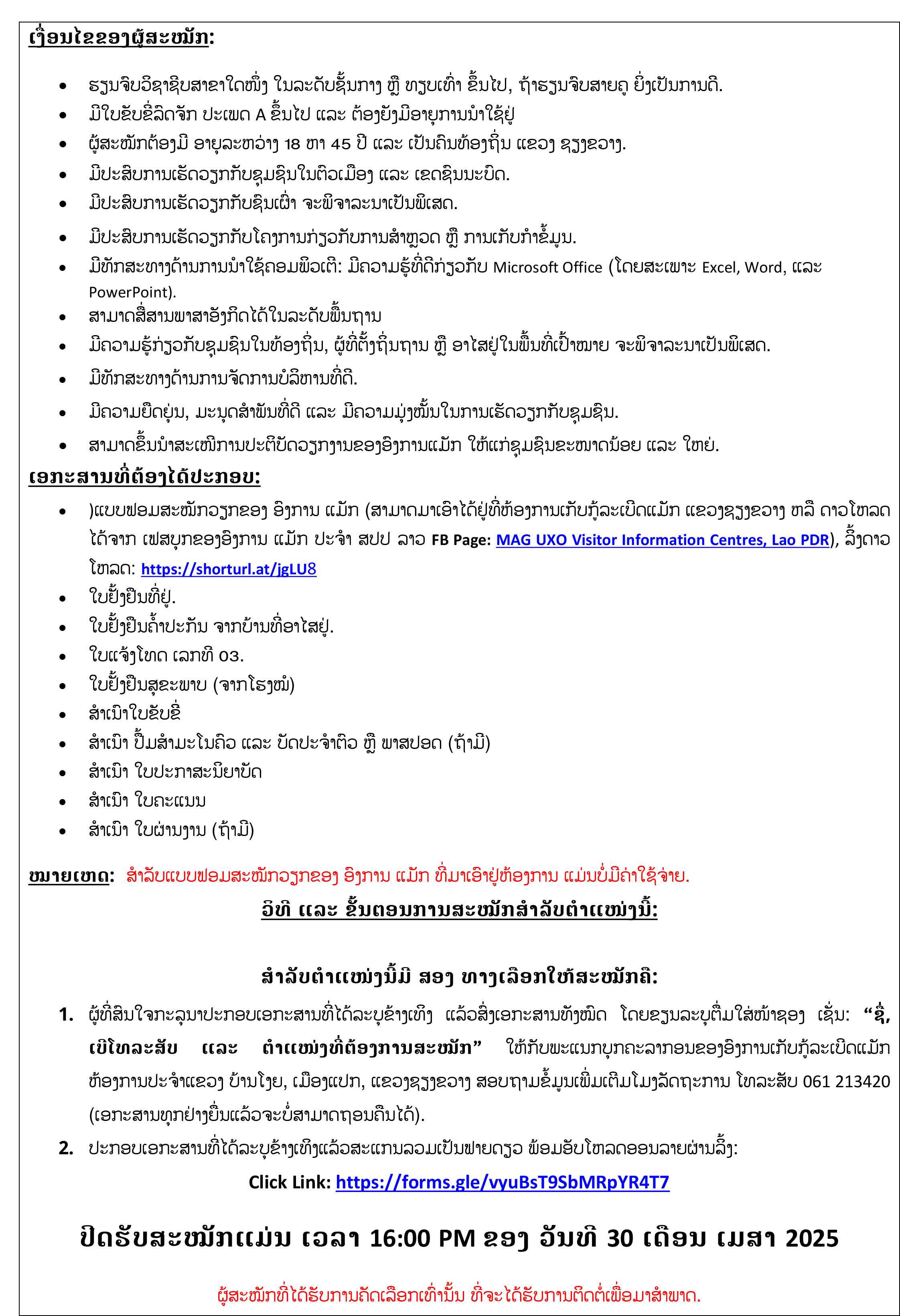 ປິດຮັບສະໝັກ: 30/Apr/2025
