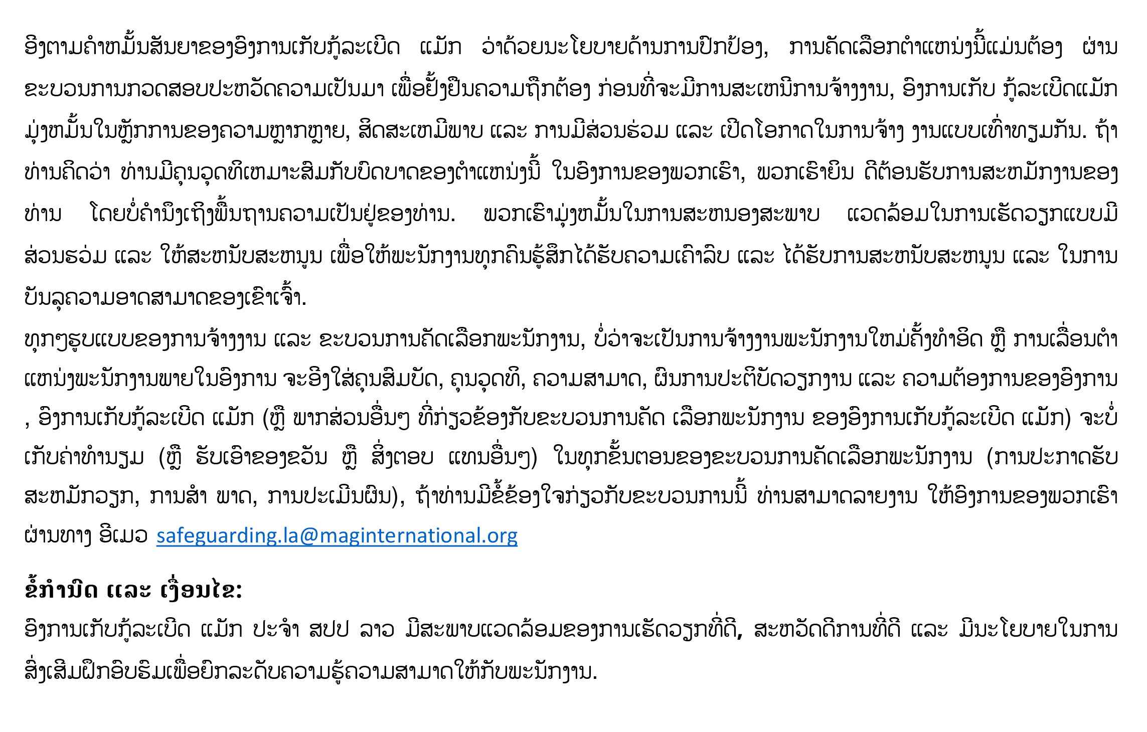 ພະນັກງານພົວພັນຊຸມຊົນ ປະຈໍາຢູ່ ອົງການເກັບກູ້ລະເບີດ ແມັກ ແຂວງຊຽງຂວາງ