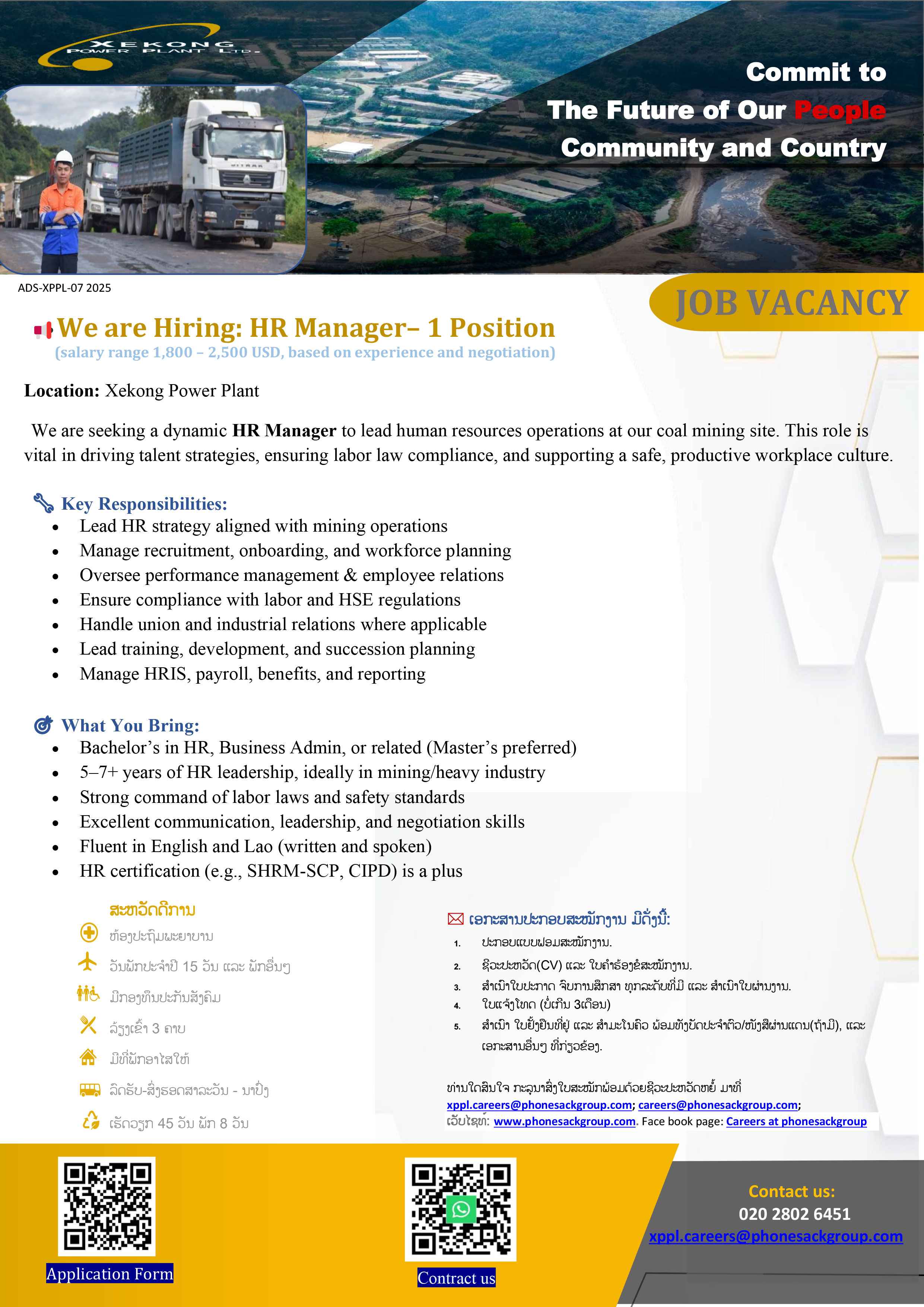 ເວັບໄຊທ໌: www.phonesackgroup.com. Face book page: Careers at phonesackgroup