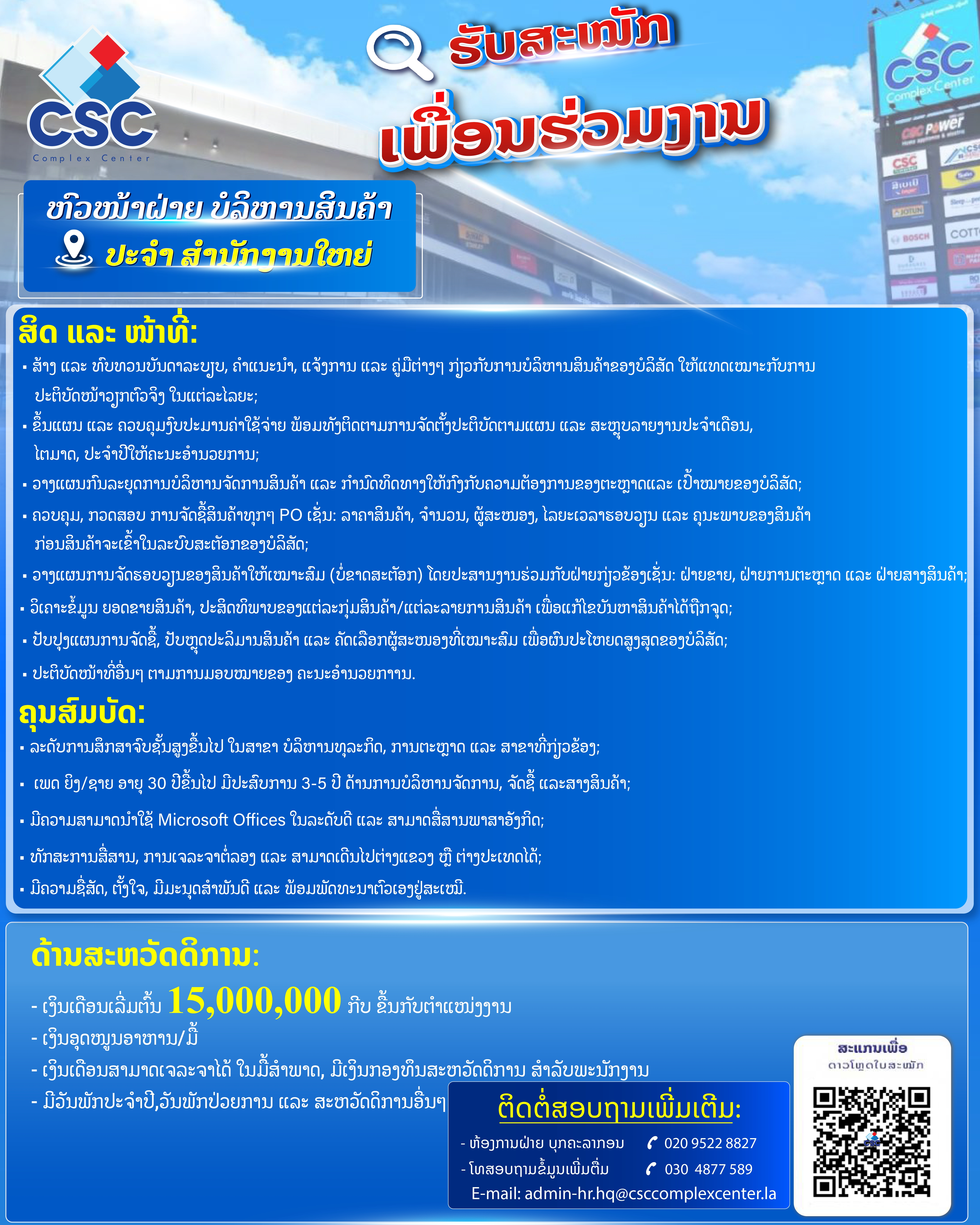ຫົວໜ້າຝ່າຍ ບໍລິຫານສິນຄ້າ